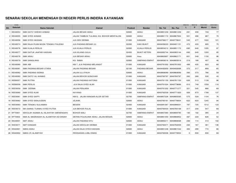 Senarai Sekolah Menegah Perlis Pdf