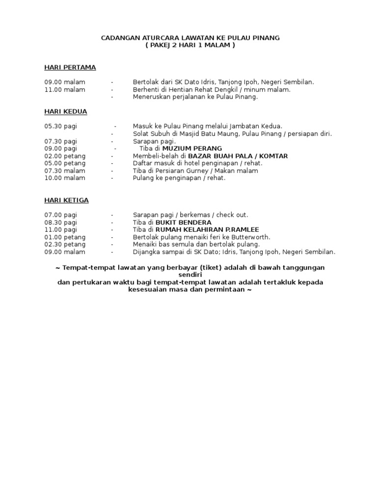 Jadual Lawatan Pulau Pinang Sk Dato Idris Pdf